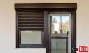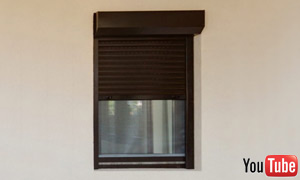 Külső tokos redőny - OUTBOX beillesztett szúnyoghálóval, 45° barna redőnytok, távirányitós működtetés.